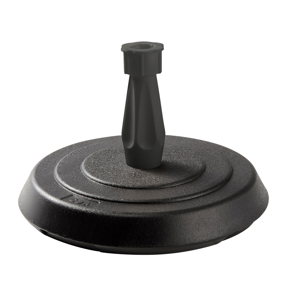 Ce pied de parasol sera compatible avec les mâts à armatures légères et avec les parasols d'une envergure de 2m maximum.