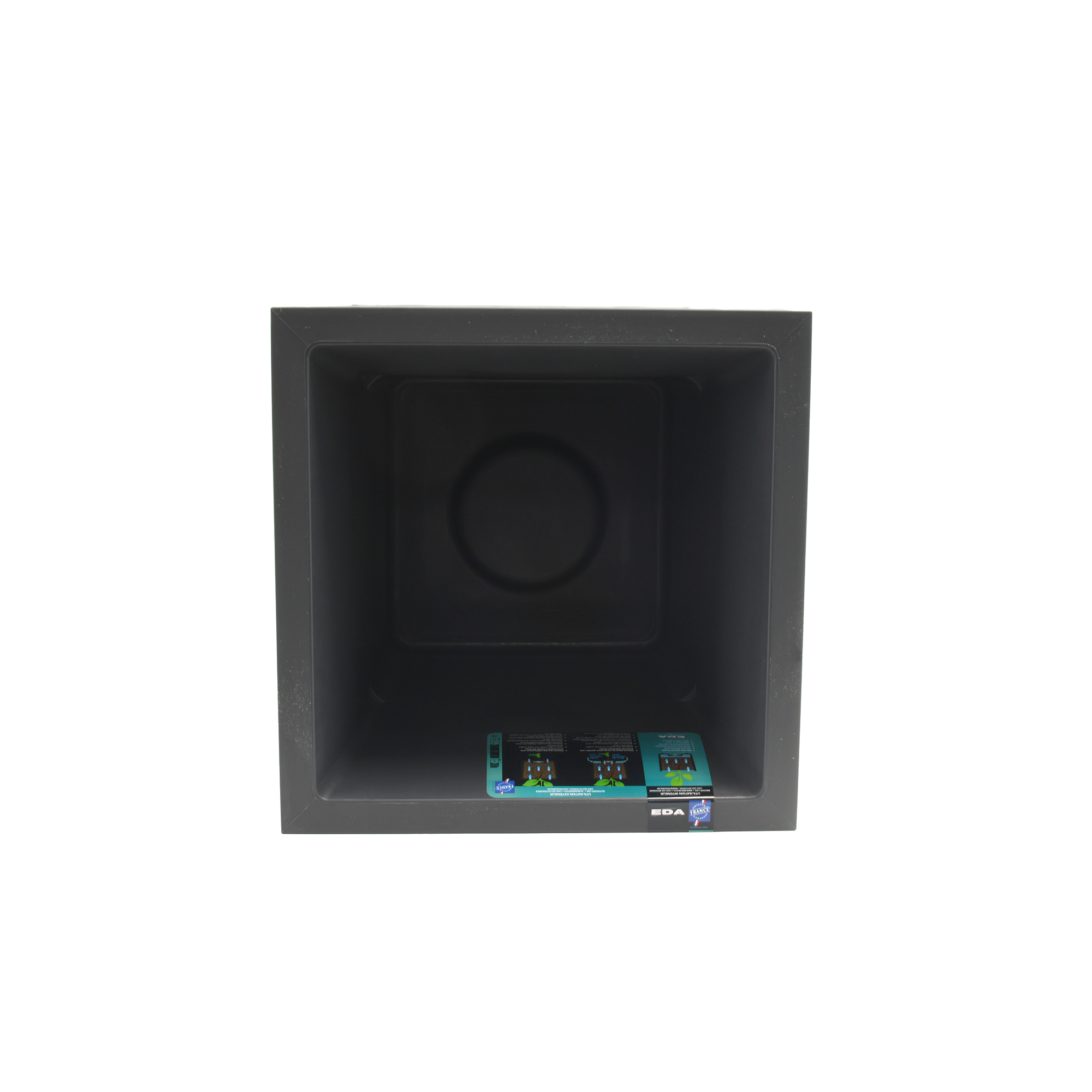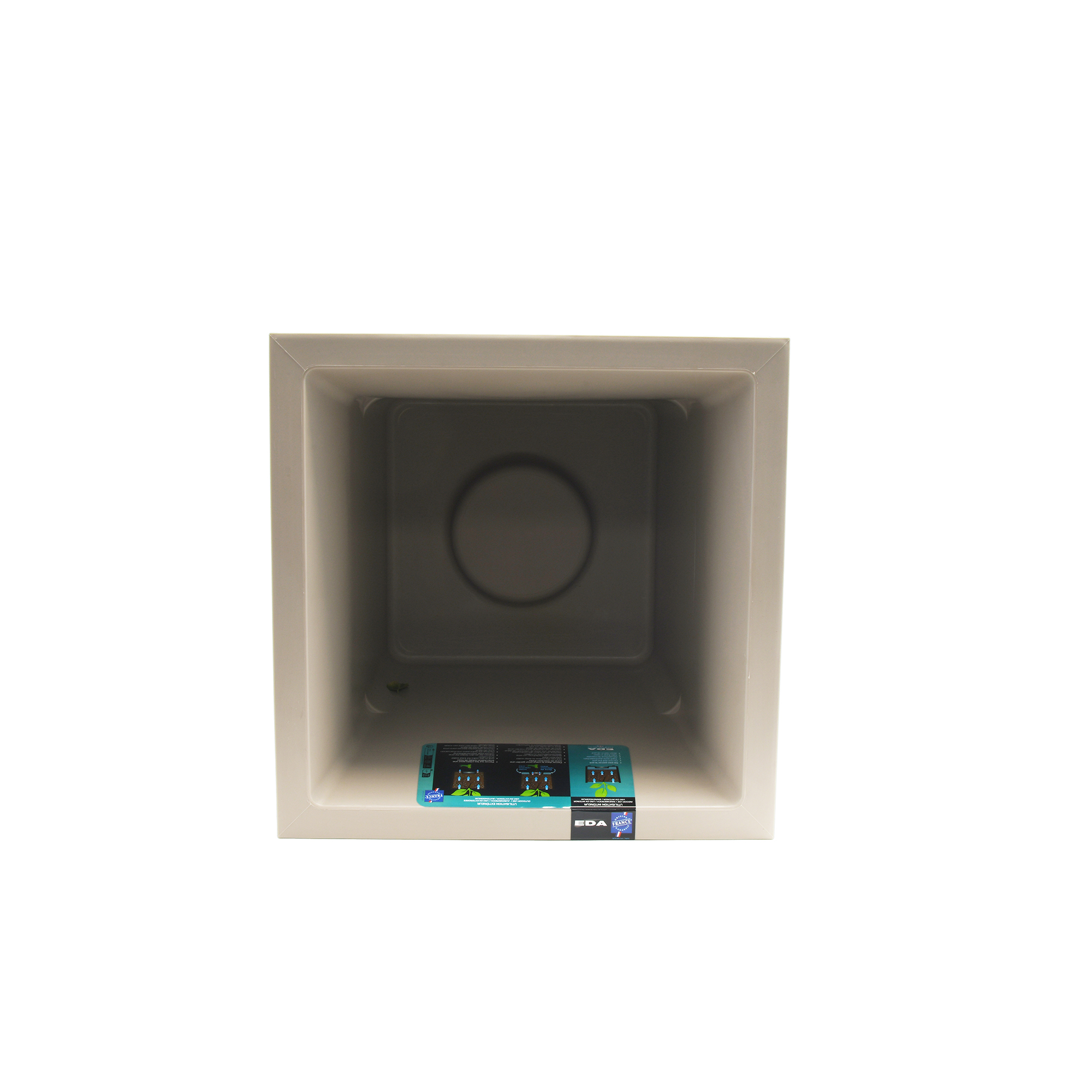 Pour une utilisation extérieure, nous vous conseillons de percer les zones indiquées (par des cercles et le dessin d’une perceuse) sous le « plot », cela permettra de conserver une réserve d'eau à l’extérieur ou autour du plot qui apportera l'apport d'eau nécessaire à vos plantes.