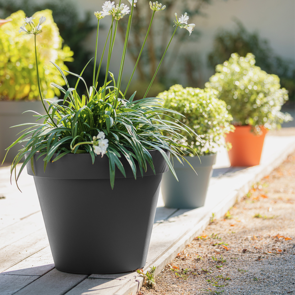 Le Pot Rond TOSCANE 59 cm avec soucoupe est l’incontournable des terrasses et jardins ! Son design rond et mat crée une belle ambiance déco.