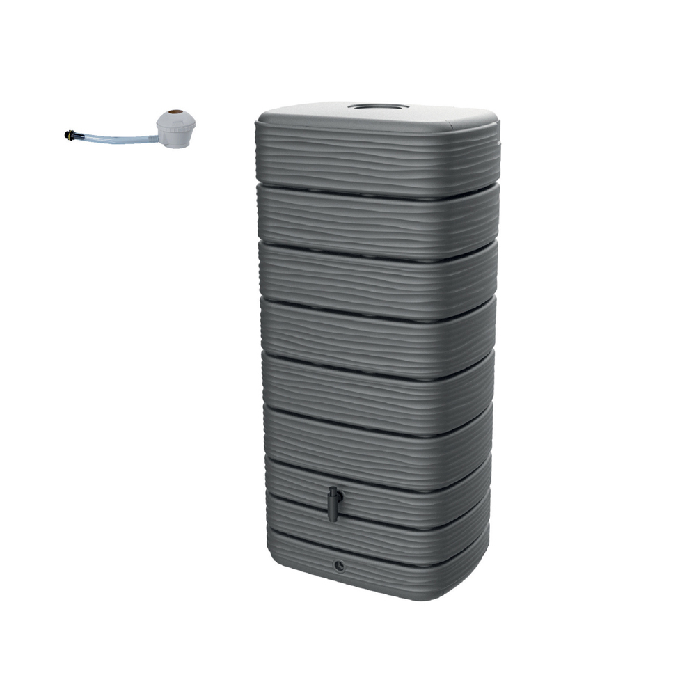 La cuve est équipée d'un bouchon de vidange pour purger la cuve en hiver, d'un robinet pour remplir son arrosoir, et d’une trappe qui retient les impuretés (feuilles, végétaux, insectes…). Cette cuve hors-sol, résistante au gel et aux UV, est le point central pour nourrir vos plantes en eau.